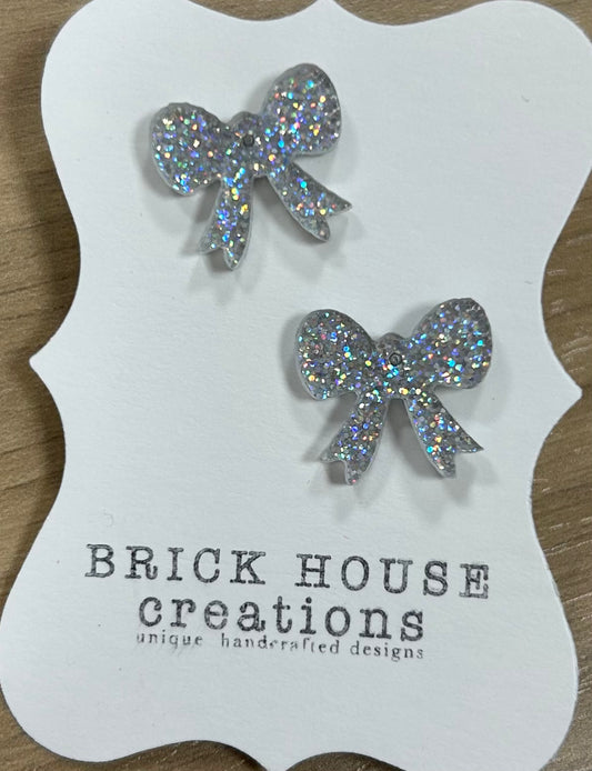 BrickHouse Creations Dainty Gold Bow With Rhinestone Studs Earrings