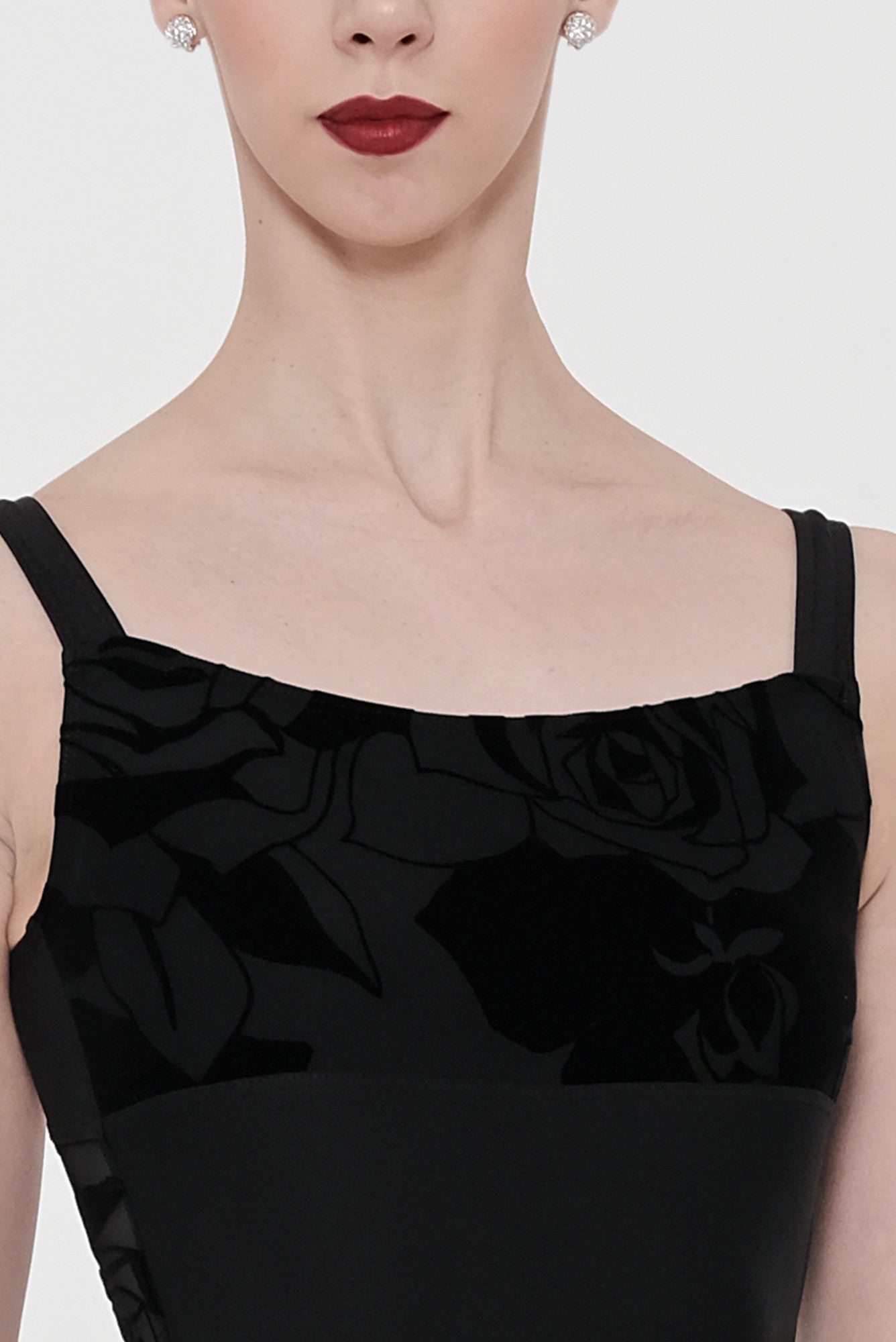 Immerse yourself in a world of floral fantasy with this leotard, combining comfortable microfiber and flocked stretch tulle. Featuring wide straps and a flattering under-bust cutout, it will elegantly enhance your silhouette.