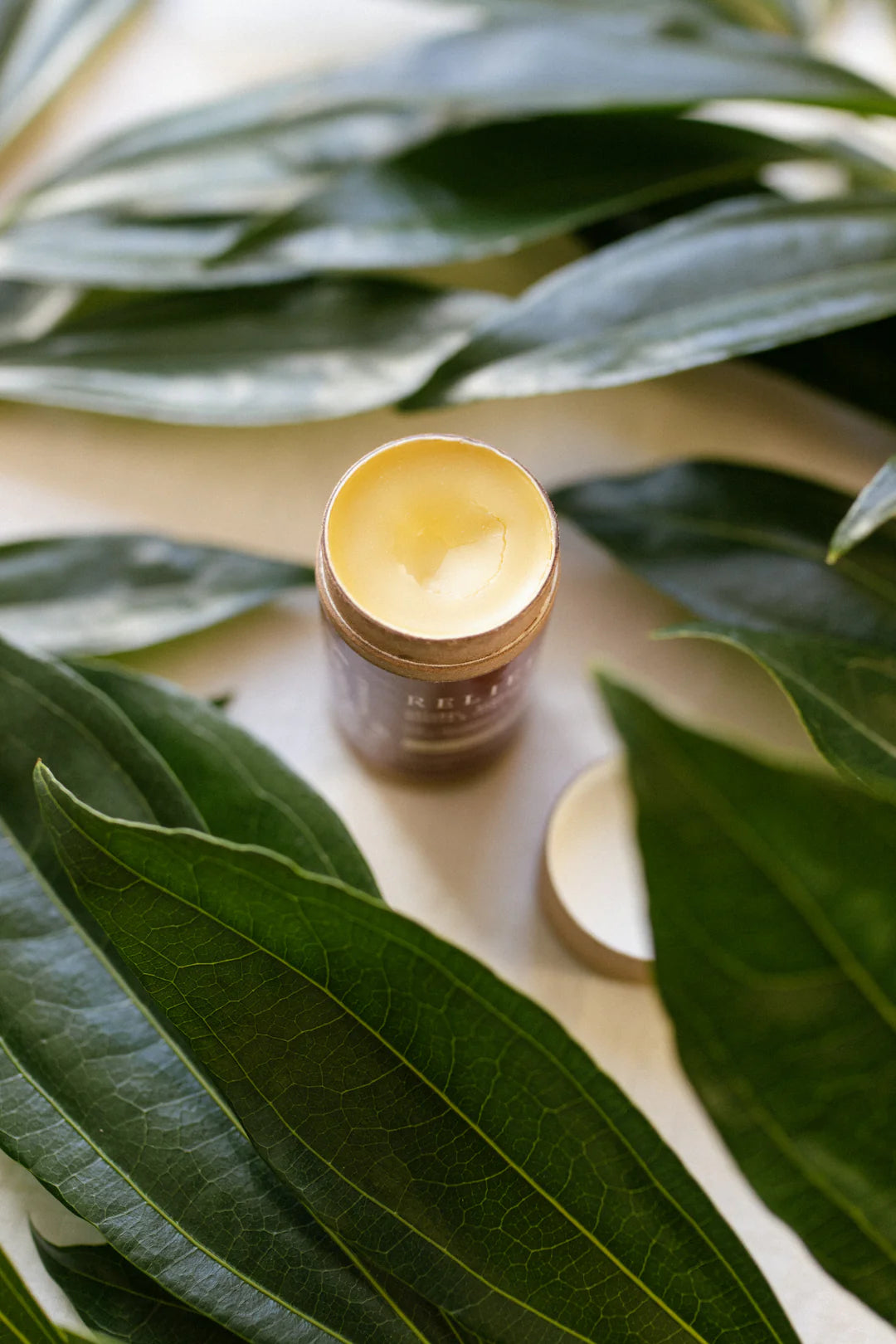 Muscle and joint pain reliever. Naturally. This balm was made with 4 powerful herbs, and 6 essential oils to help comfort your body. Use for sprains, strains, cramping, arthritis, pulled muscles, and overworked muscles. The push up paperboard tube keeps the balm off of your hands for quick and easy application. 1.35 oz.